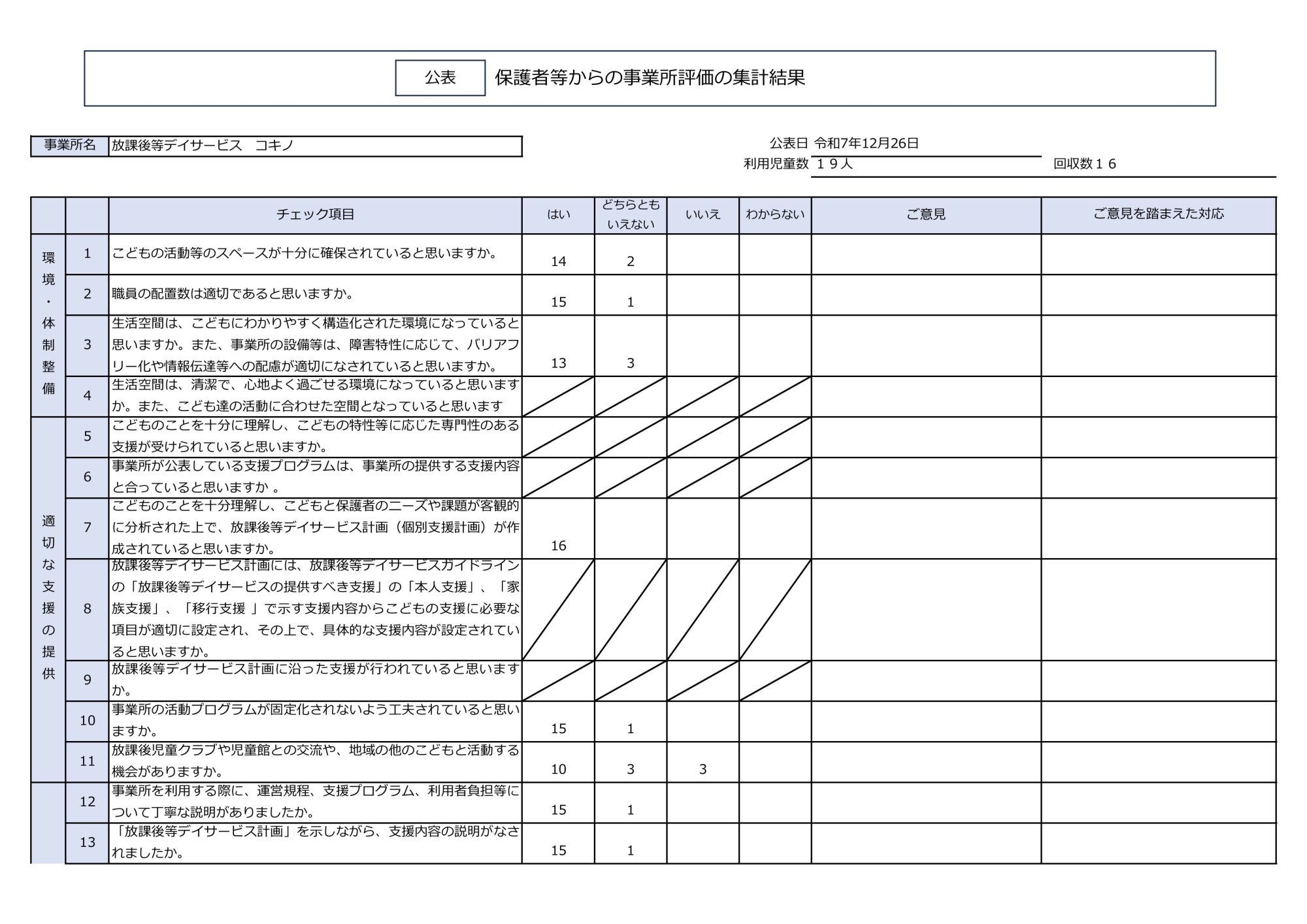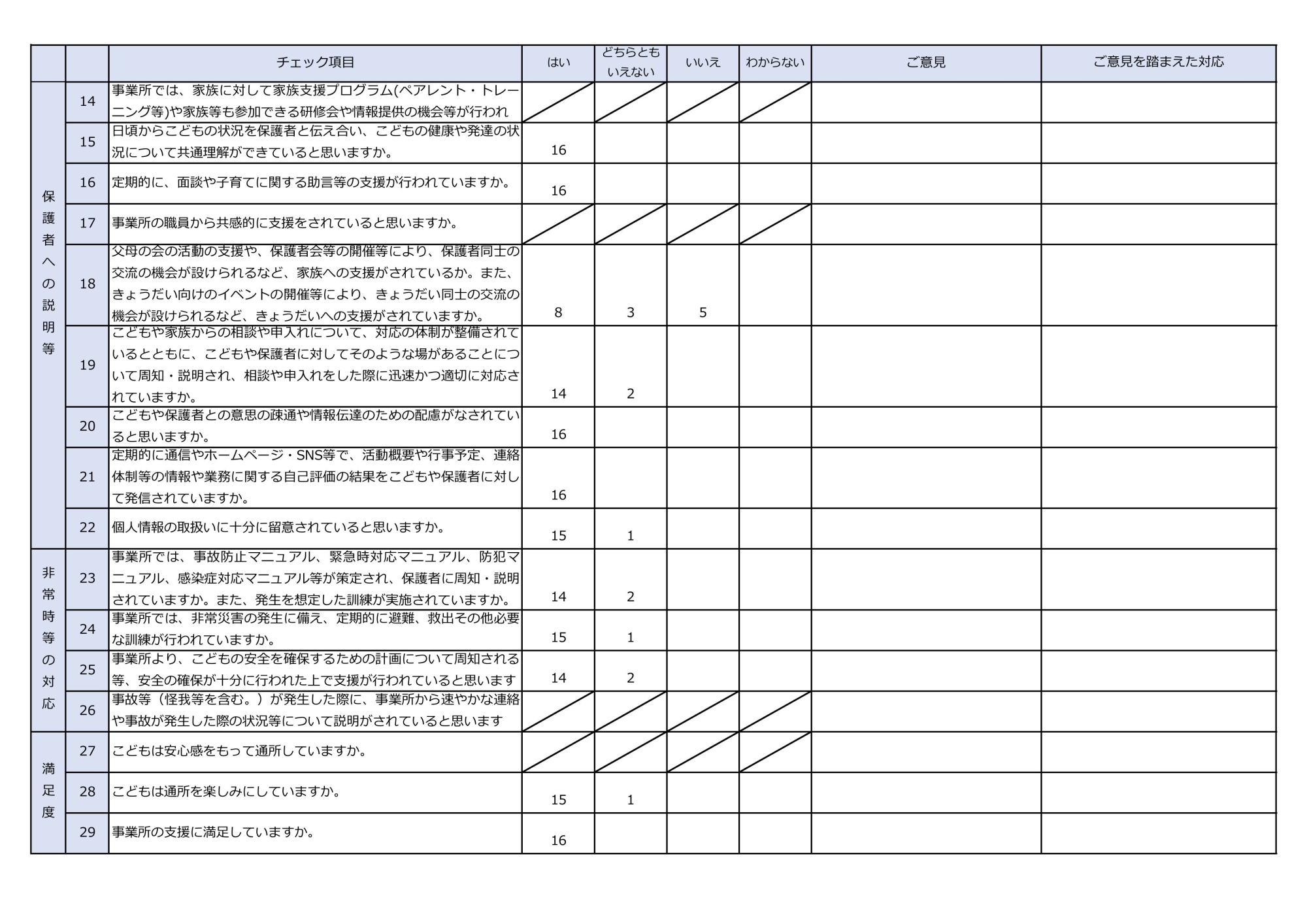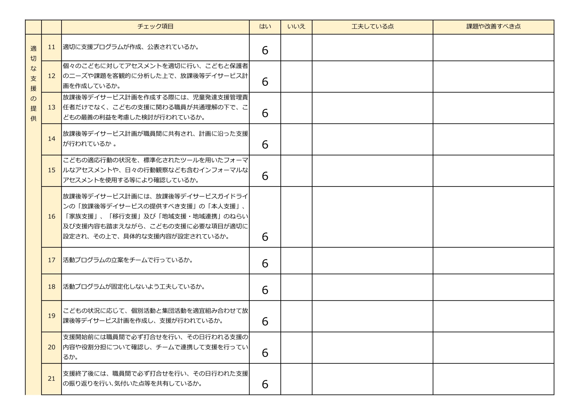 放課後等デイサービス自己評価表(評価アンケート2)