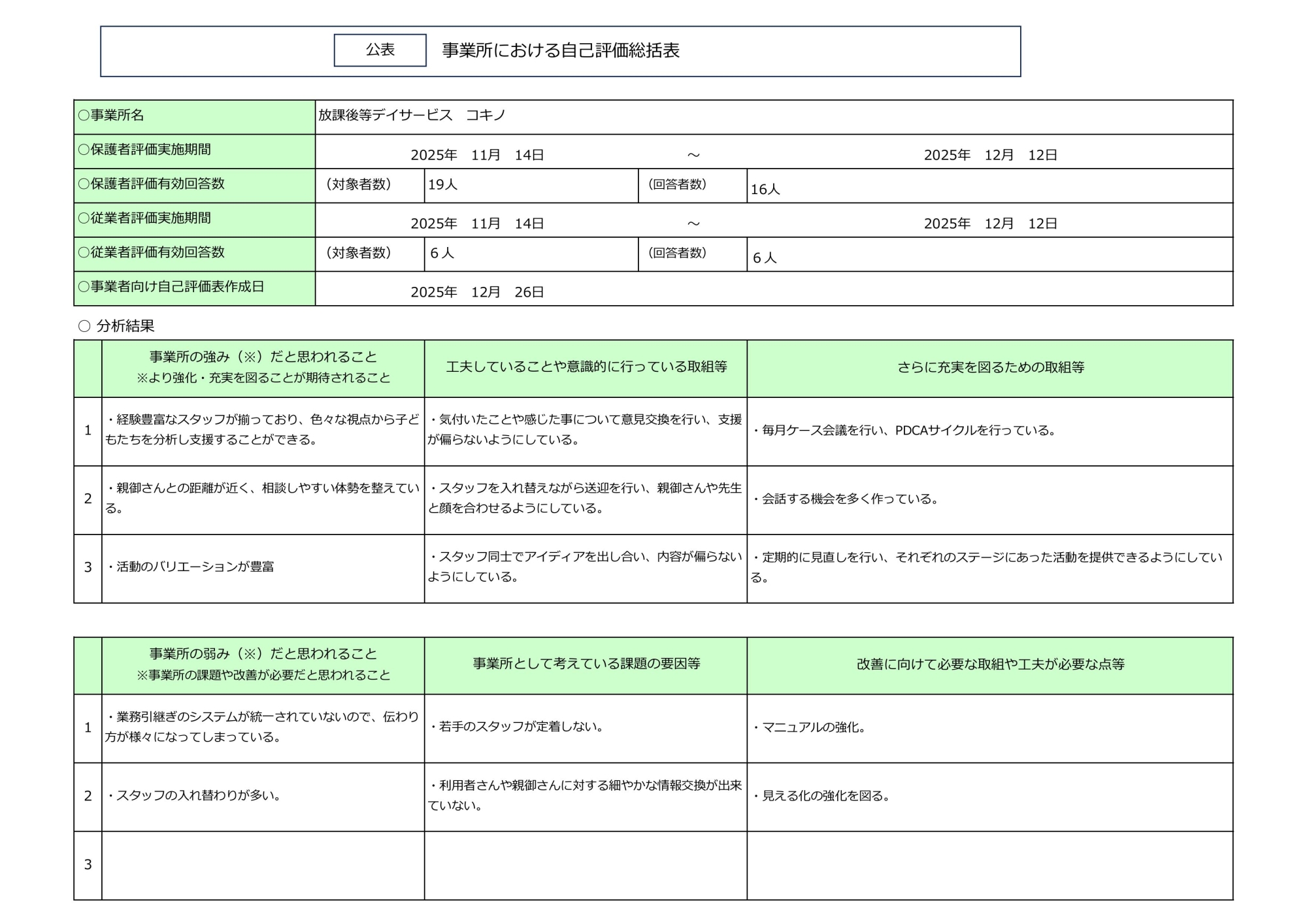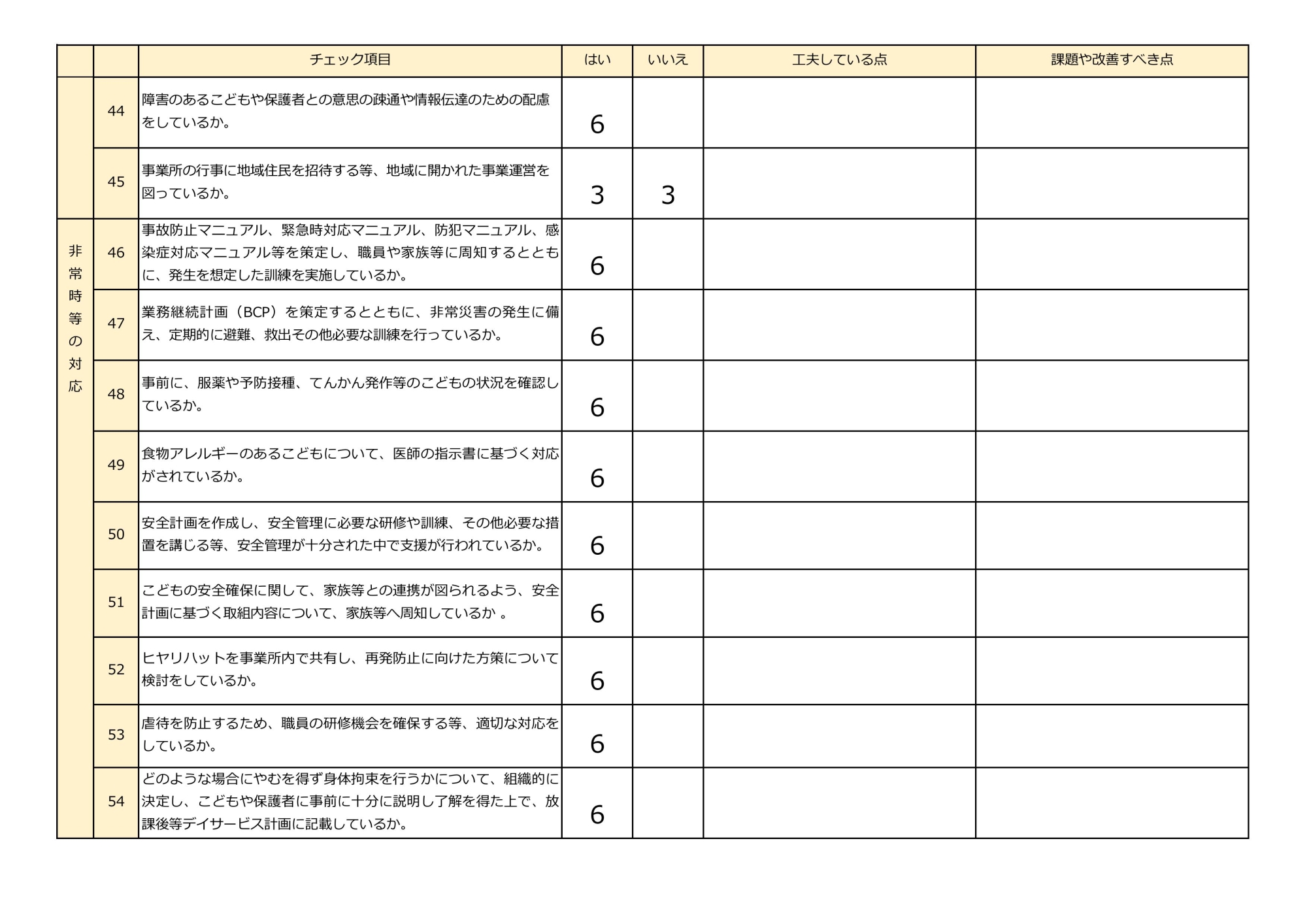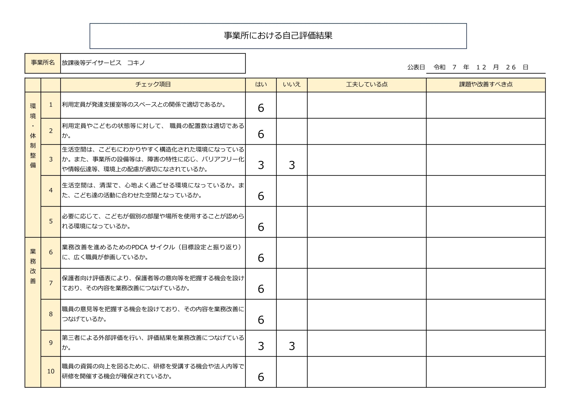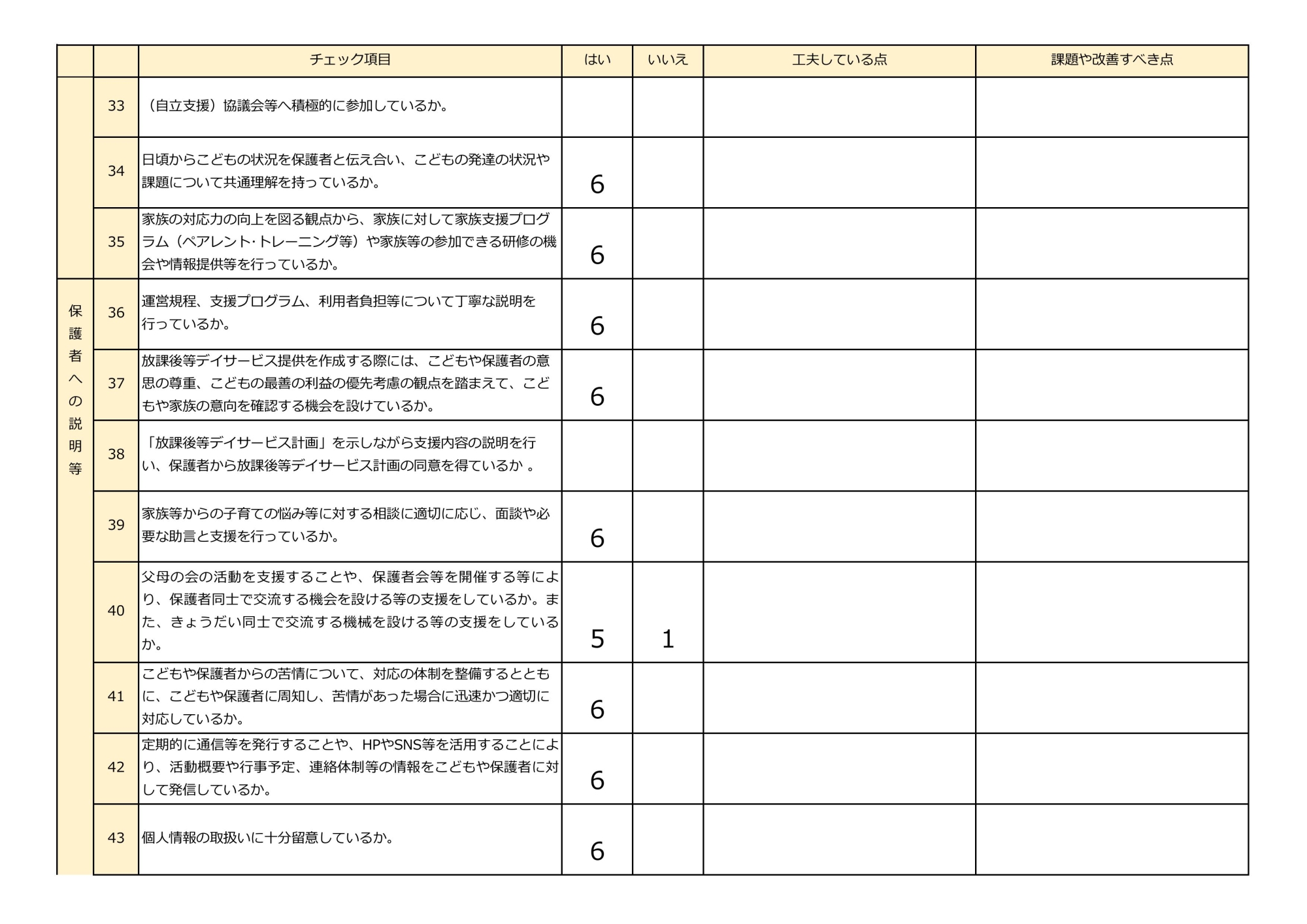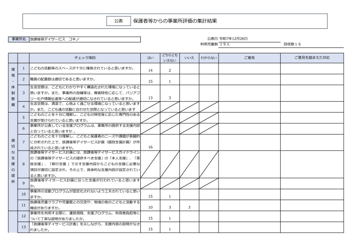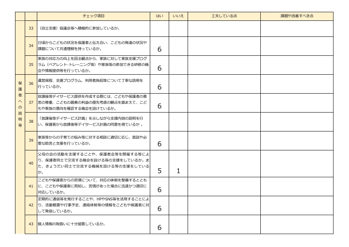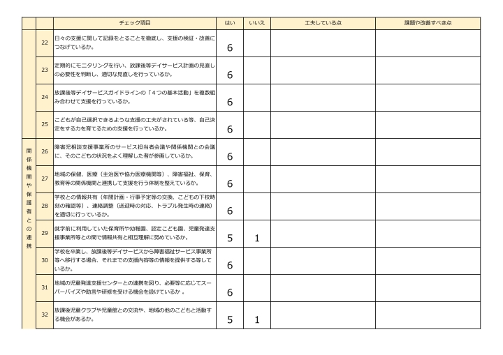 放課後等デイサービス自己評価表(評価アンケート)